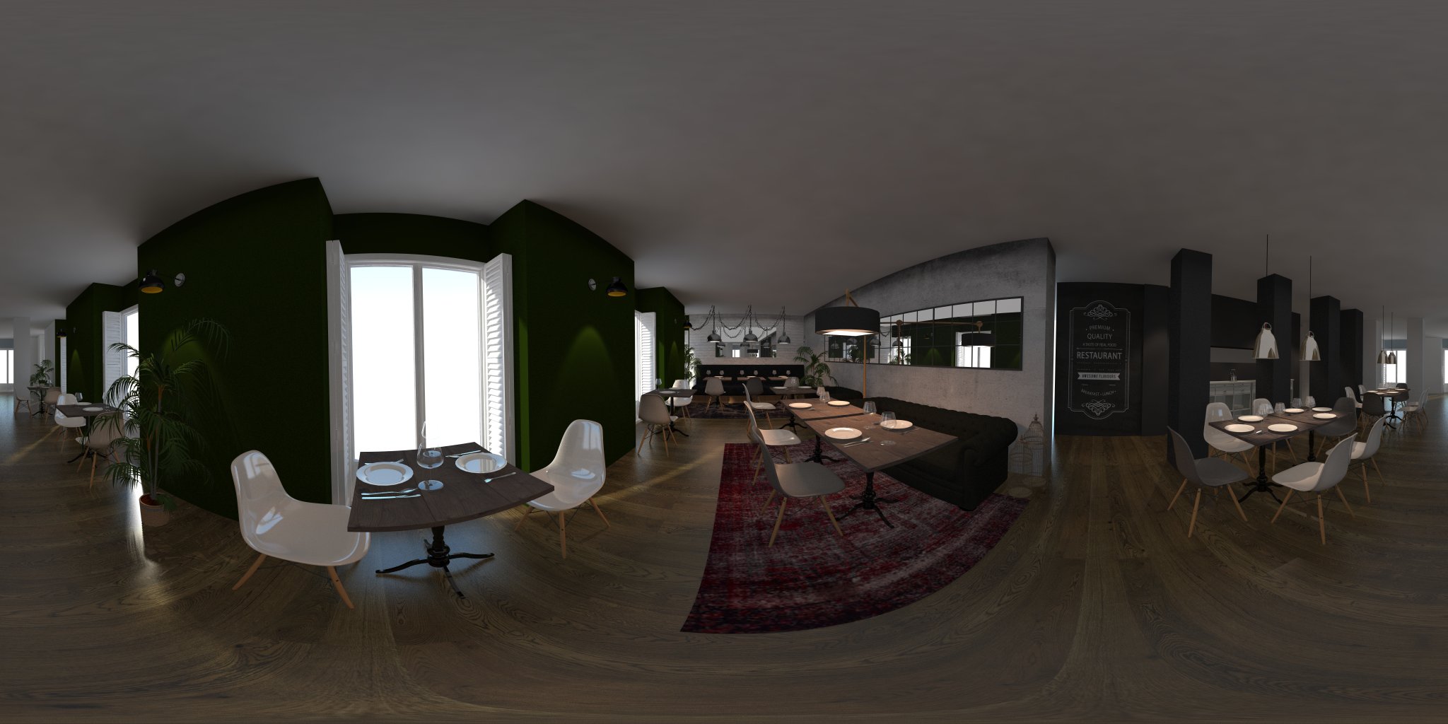 Pincha encima de la imagen y mueve el ratón. Podrás ver todo el diseño del restaurante.